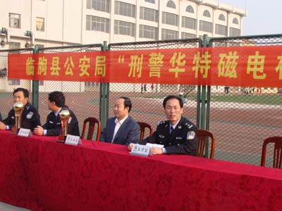 5月29日至30日,臨朐縣公安局“刑警華特磁電杯籃球賽”在一中廣場舉行。公司執行副總邴召榮、黨支部書記王兆勝和公安局領導出席開幕式。經過兩天的激烈角逐,落下帷幕。公司董事長兼總經理王兆連和縣公安局領導為優勝隊頒發獎杯、獎品。