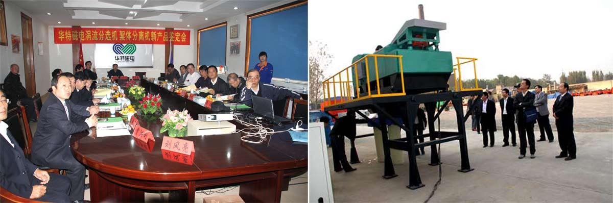 2010年10月30日,由公司承擔完成的山東省技術創新計劃項目“強磁場渦流分選機”和“稀土永磁絮體分離機”兩項新產品省級鑒定會在臨朐召開。會議由山東省科技廳、山東省經信委組織,濰坊市科技局和濰坊市經信委聯合主持。來自中國科學院電工研究所、中色科技股份有限公司、山東大學、山東科技大學、煙臺大學、山東省環境保護科學研究設計院、山東省機械設計研究院等單位的專家教授應邀到會。臨朐縣政府副縣長趙同祥致歡迎辭。