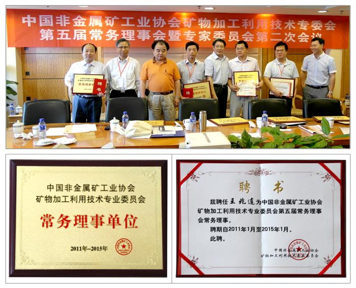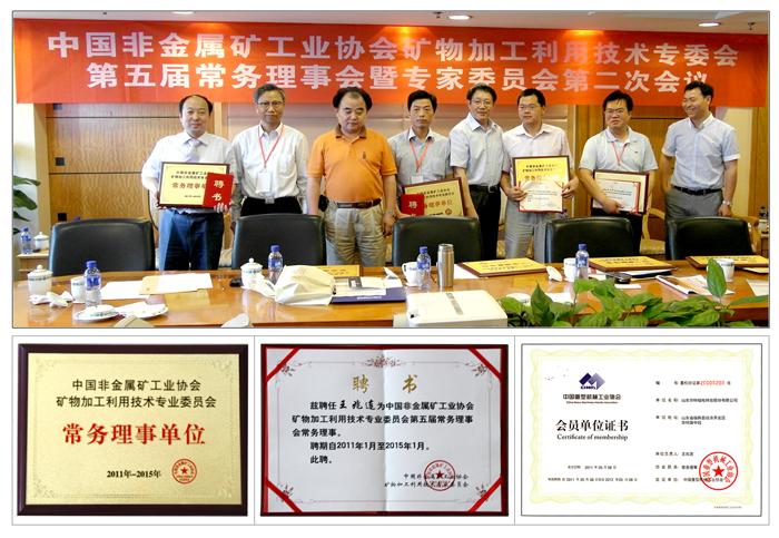 2011年5月15日,中國非金屬礦工業協會礦物加工利用技術專業委員會第五屆常務理事會和專家委員會第二次會議在長沙金源大酒店召開。會議批準聘任我公司董事長兼總經理王兆連為中國非金屬礦工業協會礦物加工利用技術專業委員會第五屆常務理事會常務理事,并批準我公司為常務理事單位。至此,我公司已分別加入濰坊市循環經濟與新能源發展促進會、濰坊市工業技術研究會、山東省發明協會、山東省光彩事業促進會、中國重型機械工業協會、中國重型機械工業協會洗選設備專業委員會、中國重型機械工業協會破碎粉磨設備專業委員會、中國重型機械工業協會礦山機械分會、中國重型機械工業協會帶式輸送機協會、全國礦山機械標準化技術委員會等組織,成為其會員、理事、常務理事、副理事長單位。