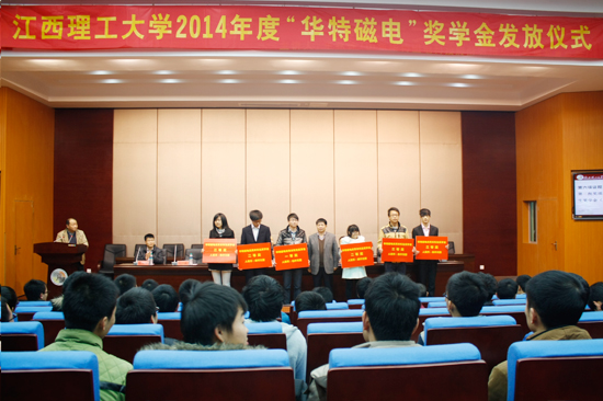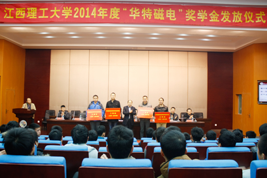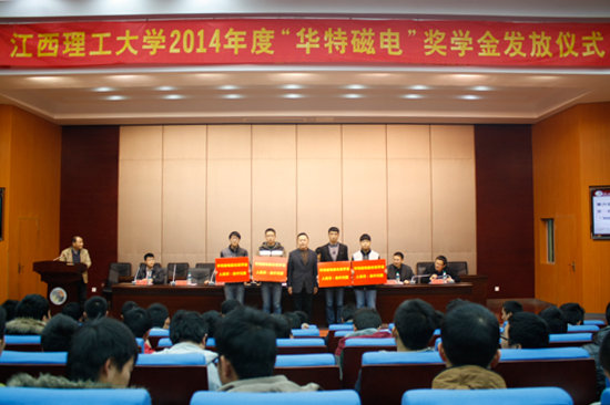 1月13日,我公司與江西理工大學“華特磁電”獎學金頒獎儀式暨報告會在江西理工大學隆重舉行。
