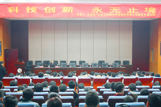 獎學金發放儀式結束后,王兆連董事長作《科技創新 永無止境》的專題報告,向在場的莘莘學子們分享了公司艱辛的創業發展史,介紹了公司的主要技術產品和最新的研發動態。最后,王董事長誠摯邀請優秀的有志之士加盟華特,共同發展,實現人生的理想和價值。
