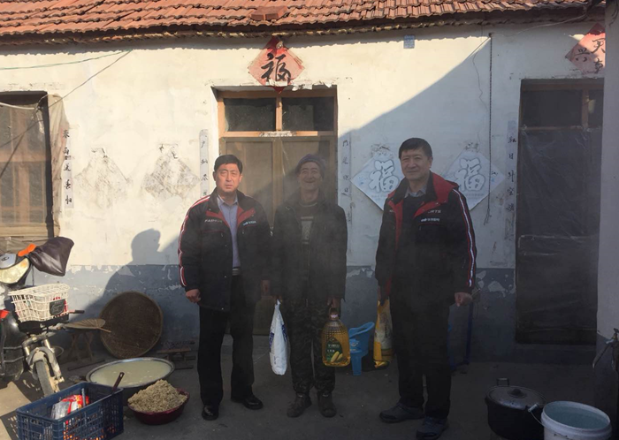 在老莊子村,慰問組在村兩委成員的陪同下,走訪慰問了25個因病、因傷等情況致貧的困難戶。慰問組每到一戶都主動詢問他們的家庭情況、經濟來源、生活條件以及他們生活中的困難,為他們送去了油、米、面等生活用品,帶去了公司董事長王兆連和全體員工的關懷與祝福。鼓勵他們歡歡樂樂過春節,健健康康迎新年。告訴他們黨和政府不會忘記他們,遇到困難及時聯系,村兩委和華特磁電公司是他們堅強的后盾。