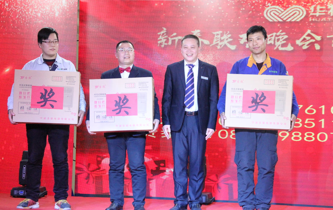 接下來,進入到第一次抽獎環節。公司綜合管理部經理王建功、工程項目部經理王建磊、生產中心常務副總經理馮愛濤、營銷中心副總張洪彬、技術中心總經理助理劉世昌分別抽取了幸運獎50名,獎品為不銹鋼炒鍋1件。