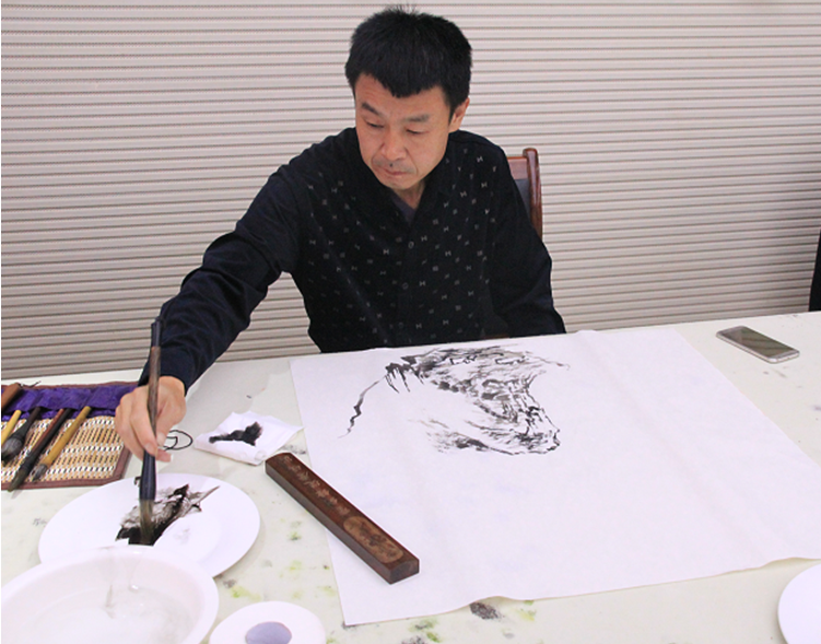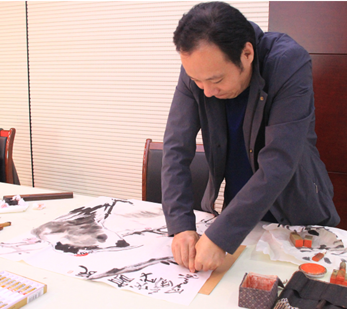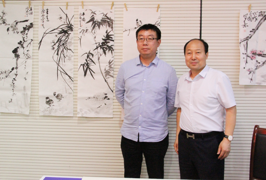 短暫的座談會(huì)后,畫家們來到了公司二樓多功能大廳開始了書畫創(chuàng)作。臨朐美術(shù)名家參加活動(dòng)的有:傅立、白星安、王法生、姜會(huì)信、王春國(guó);臨朐書法名家參加活動(dòng)的有:張頤人、宋智利、劉建華、周世民、楊文梁。老師們書畫創(chuàng)作的熱情高漲,一直創(chuàng)作到下午1:00才收筆。