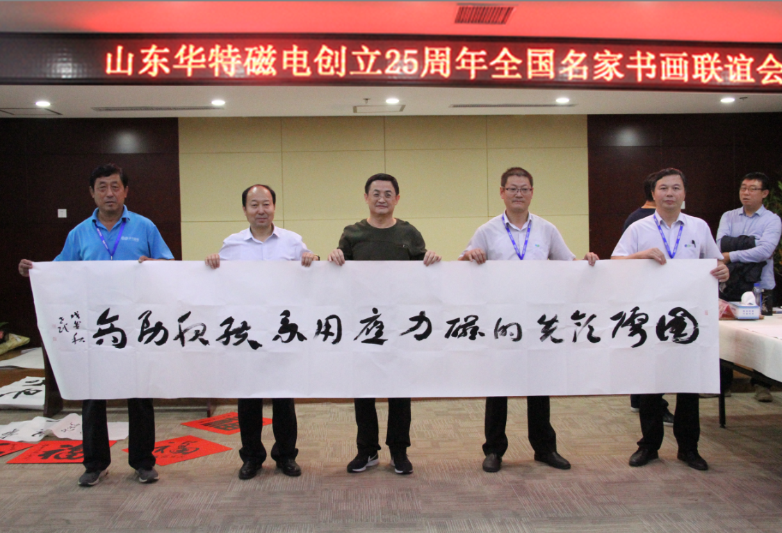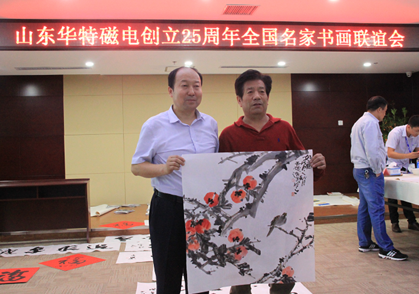 座談會(huì)上,王兆連董事長(zhǎng)代表華特公司各位股東以及全體員工,向出席本次活動(dòng)的各位領(lǐng)導(dǎo)以及書畫界的專家們表示熱烈歡迎。并表示,公司自1993年8月8日創(chuàng)立至今,歷經(jīng)25年風(fēng)霜雪雨,在各級(jí)黨委、政府的大力支持下,在社會(huì)各界的熱情幫助下,在全體員工的不懈努力下,取得了跨越式發(fā)展,由創(chuàng)業(yè)之初的一間辦公室、兩間茅草屋發(fā)展成為知名的磁電裝備制造業(yè)領(lǐng)軍企業(yè)。二十五年的艱辛歷程凝練出了華特特有的,具有旺盛生命力、務(wù)實(shí)、高效、團(tuán)結(jié)的企業(yè)文化。此次聯(lián)誼會(huì)的成功舉辦,是各位書畫名家用精美作品向華特公司25周年華誕獻(xiàn)上的一份精神厚禮,這將作為慶祝“華特創(chuàng)立25周年”宣傳紀(jì)念活動(dòng)的重要組成部分,在公司創(chuàng)新發(fā)展歷程上留下濃墨重彩的一筆。今天有幸借此機(jī)會(huì),同所有的書畫愛好者們,一起分享各位德藝雙馨的書畫藝術(shù)家?guī)淼娜乱曈X體驗(yàn),領(lǐng)略藝術(shù)美的韻味,感受傳統(tǒng)文化的魅力!