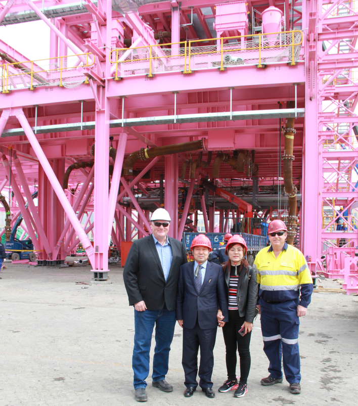 2019年4月29日,澳大利亞羅伊山尾礦項目第一批模塊安裝完成儀式在大連和尚島大組現場隆重舉行。大連華銳重工集團股份有限公司董事長叢紅、集團副董事長邵長南、總裁田長軍、羅伊山公司CEO Barry、項目總監PAUL、高級項目經理JIM,漢考克集團市場總監LINDA LAU以及BV監理公司、華特、海王、陸凱、威爾等供應商代表參加會議。山東華特磁電公司董事長兼總裁王兆連、高級副總裁劉梅、公司總工程師賈洪利、國際貿易部總經理劉建鵬應邀參加活動,代表華特出席儀式。會上BARRY先生代表羅伊山公司對項目的進展表示滿意,對供應商的產品質量和緊密合作給予了高度評價,并與華特現場工作人員合影留念。