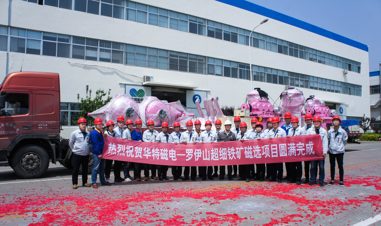該項目完全采用澳洲標準設計、制造、檢驗和驗收,對原材料供應商等各個環節要求嚴格,2018年8月,山東華特磁電憑借雄厚的技術實力和人才優勢,通過了業主的層層審查,最終成為羅伊山鐵礦生產線-超細鐵回收項目磁選設備的供應商,該項目設備為14臺LHGC-3000立環高梯度磁選機和14臺CTB-1540筒式磁選機,合同總額達1000多萬美元。