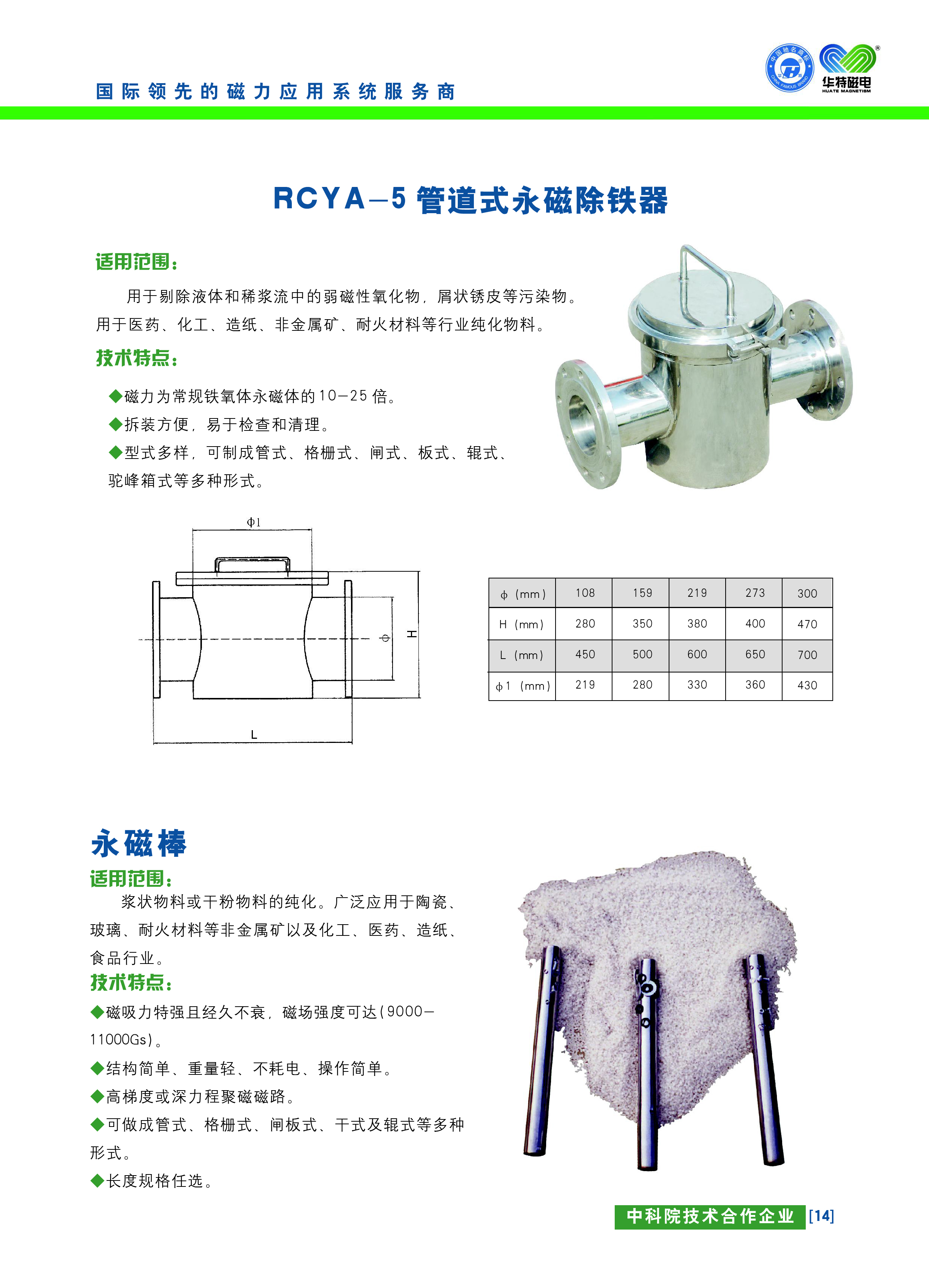 用于剔除液體和稀漿流中的弱磁性氧化物,屑狀銹皮等污染物。用于醫藥、化工、造紙、非金屬礦、耐火材料等行業純化物料。