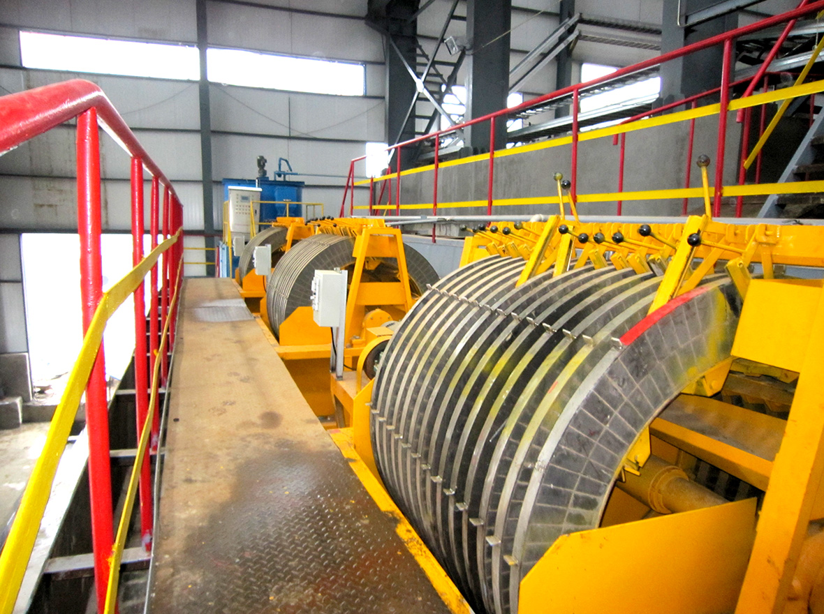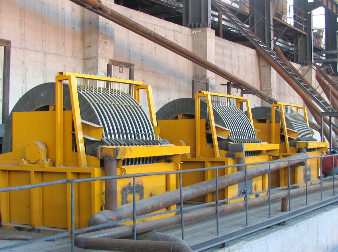 ◆中場強脈動卸礦回收機采用強磁釹鐵硼為載體,并組成圓環形磁系,磁系的一部分浸沒在礦漿中,通過連續旋轉地方法不斷吸附礦漿中的磁性顆粒。環形磁系磁場采用斷續分布,保證在無磁區自然卸料,以達磁脈動卸礦的目的。