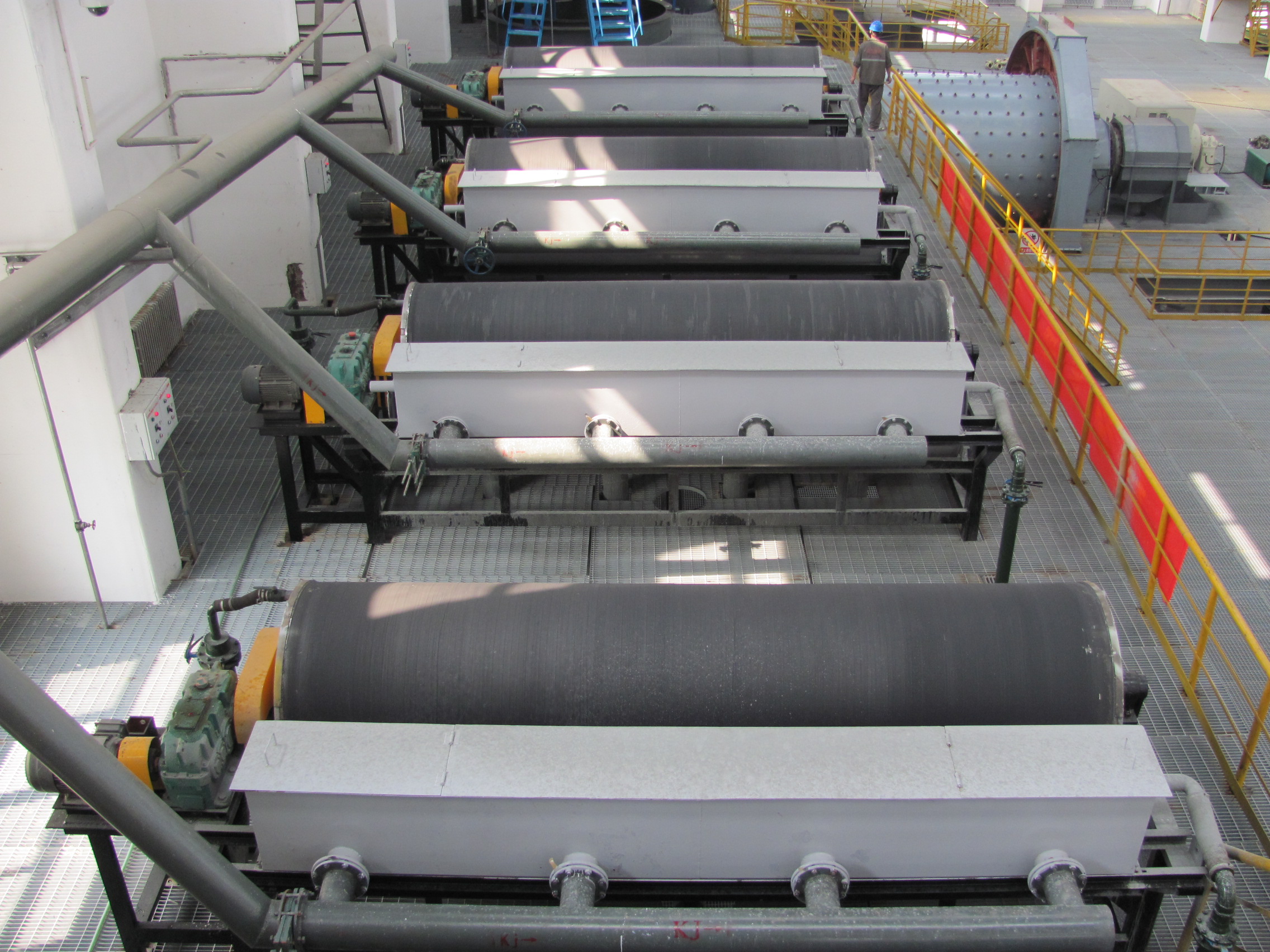 ◆ 內部磁系采用多極排列,增加了磁性顆粒的翻動次數;◆ 通過磁場的脈動作用使磁性顆粒,在運動過程中產生沉降和吸附運動;◆ 大包角磁系使磁性礦粒中的部分脈石及泥土能被有效清除;◆ 本機配有精礦中洗水管,能夠得到較高品位的精礦。